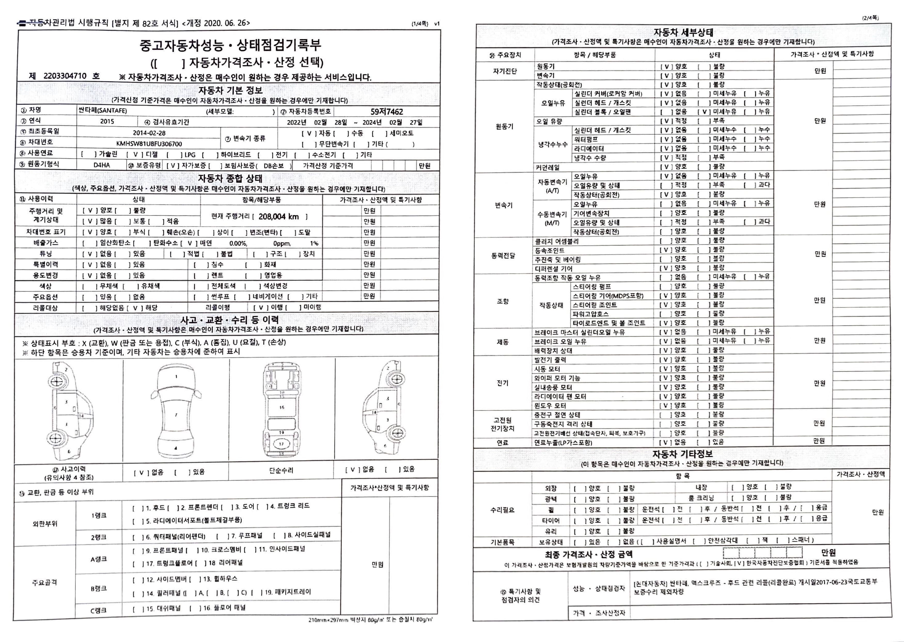 Hyundai Santafe DM Item Number : INR1674201428 Date : 2023-01-20 Hits : 139 Vehicle View Vehicle info media External device SunroofPower-Electric TrunkGhost Door ClosingElectric Folding Side MirrorAluminum WheelRoof RackHeadlamp [HID]Headlamp [LED] Internal device Power Door LockPower Steering WheelPower WindowElectrically Adjustable Steering WheelPaddle shiftSteering Wheel Remote ControlECM Room MirrorHigh PassHeated steering wheel Safety device Brake lock protection [ABS]Anti-lock braking [TCS]Air bag [Driver]Air bag [Passenger seat]Air bag [side]Air bag [curtain]Dynamic Stability Control [ESC]Tire pressure sensor [TPMS] Lane departure warning system [LDWS]Electronic control suspension [ECS]Blind-Spot Collision Warning SystemThe Rear camera360 degrees around viewThe parking sensor [Front]The parking sensor [Rear] Vehicle Convenience Multimedia Smart keyCruise Control [General]Cruise control [adaptive]Head Up Display [HUD]Electric Parking Brake [EPB]an automatic air conditionerWireless door lockRain sensorAutolight Curtain-blind [back seat]Curtain-blind [rear]NavigationFront seat AV monitorRear seat AV monitorUSB terminalAUX terminalBluetoothCD player Seat device Heated seat [front seat]Heated seat [back seat]a leather sheetElectric seat [driver's seat]Electric seat [passenger seat]Electric seat [rear seat] Ventilation seat [driver seat]Ventilation seat [passenger seat]Ventilation seat [rear seat]a Massage seatMemory seat [driver's seat]Memory seat [passenger seat] Condition Report No indication(normal) X (replacement)W (plate metal, weld)A (absorption)C (corrosion)U (convex)T (damage)F (bending)m (adjustment) Hyundai Santafe DM Status Sold out Type Car Domestic Make Hyundai Model Santa Fe Trim Santa Fe DM (12-15) Model Year 2015 Distance 208,724km Fuel Diesel Transmission Auto Color Blue Accident history No Accidents $ 8,940 Request a Car LINK COPY